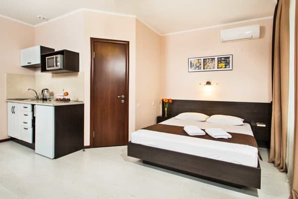 В центральной части столицы, на улице Саксаганского, 42/2 вы найдете апартаменты «FlatLux Студио». В квартире 1 комната, обустроенная двуспальной кроватью, телевизором, кондиционером, современным шкафом. Предоставляются мини-наборы косметических средств. На кухонной зоне гости могут воспользоваться: техникой, плитой, посудой для приготовления еды. Подача воды осуществляется круглосуточно. Для проживающих предоставляется стиралка, утюг, фен. От апартаментов к ст. М. Университет 650 м, к Ж/Д вокзалу 1,8 км.
